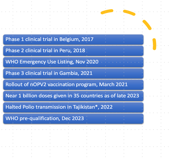 Leveraging our understanding of virus replication and evolution, we have developed innovative poliovirus vaccine strains aimed at eradicating global poliomyelitis. While live-attenuated polio vaccines, such as the Sabin strains, have significantly reduced polio cases over the past few decades, vaccine-derived polioviruses (VDPVs) remain a major obstacle to complete eradication. To address this challenge, we analyzed poliovirus evolution to create genetically stable, safer, and more immunogenic novel oral polio vaccines (nOPVs) for all three poliovirus types. These advancements represent a critical step toward overcoming the final barriers to a polio-free world (Konopka-Anstadt et al., 2020; Stern et al., 2017; Yeh et al., 2023, 2020). Among them, nOPV1 and nOPV3 are being tested in phase 2 clinical trials. nOPV2 has been granted WHO pre-qualification and over 1 billion doses have been administered in over 35 countries since March 2021. Using lessons learned from nOPVs, we target other enteroviruses to generate promising vaccine strains with manipulated tissue tropism.